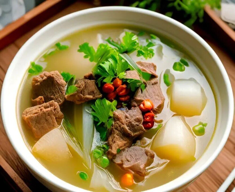 Белая редька , говядина , зеленый лук , кинза , соль , белый перец